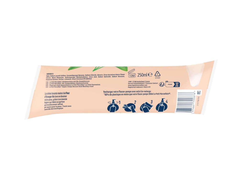 LE PETIT MARSEILLAIS krémové tekuté mýdlo s BIO KVĚTEM POMERANČOVNÍKU, 250 ml.